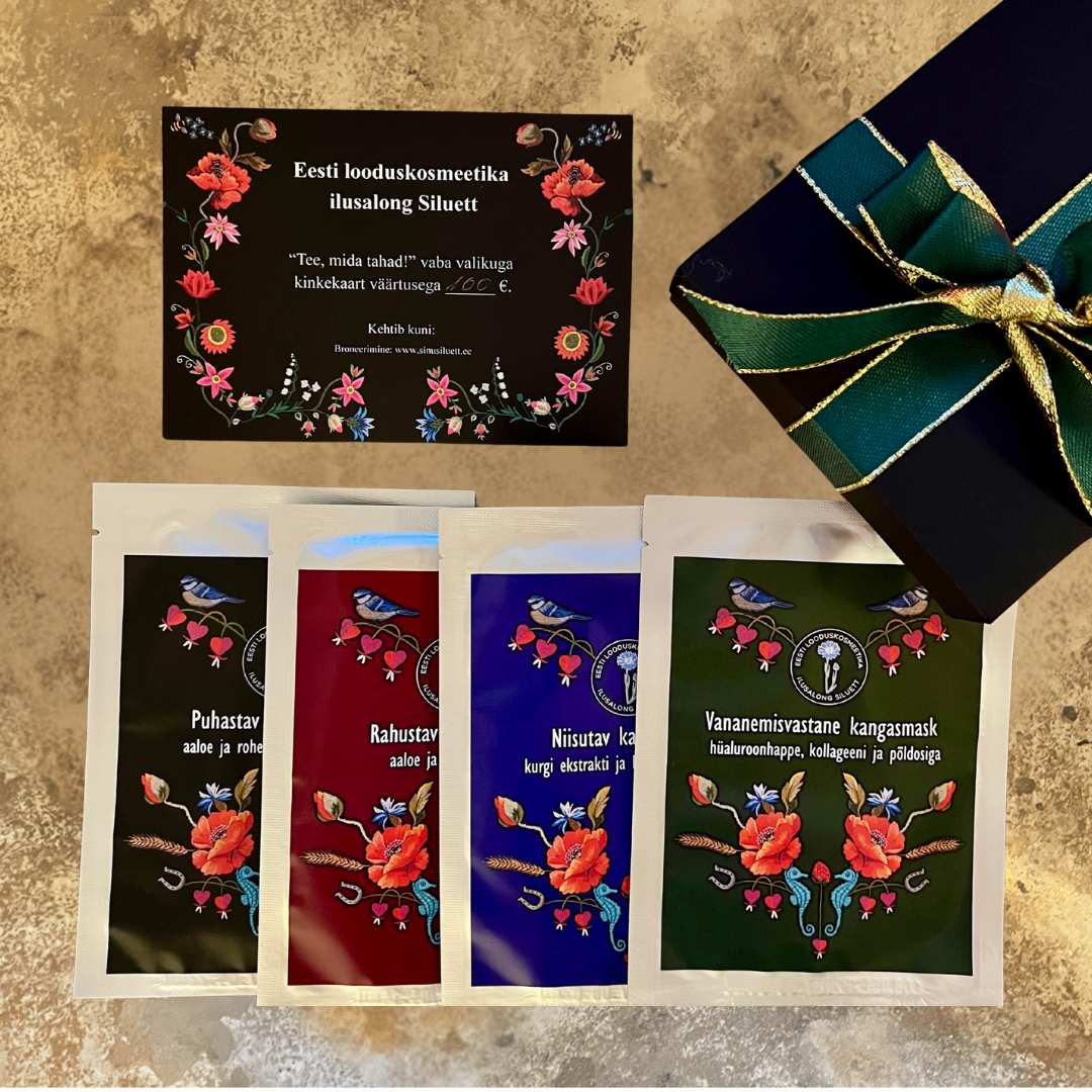Eesti looduskosmeetika salong Siluett teostab iluhooldusi vaid kodumaist päritolu looduskosmeetikaga. Silueti partneriteks on Eesti loodusbrändid nagu D’Difference, Tilk!, Hoia, Berrichi, Magrada, Luuv ja teised. Valikus on näiteks Nurme astelpaju pediküür, Signe Seebid roosiõie maniküür, 9-etapiline Joik Organic näohooldus- Anne&Stiil ilulemmik 2021!, Turbliss 24K kullaga näohooldus – Buduaar lemmik 2019!, auhinnatud Ruthie Belle vegan lash lift, 7-etapiline Nôgel sügavpuhastav särahooldus C-vitamiiniga- Buduaari ilulemmik 2025!, samuti erinevad massaažid, näiteks Dodici Organic tähemärgi kehamassaaž ja palju muudki. “Tee, mida tahad!” kinkekaardiga saab valida ise endale meelepärased iluelamused väärtusega kuni 75€.