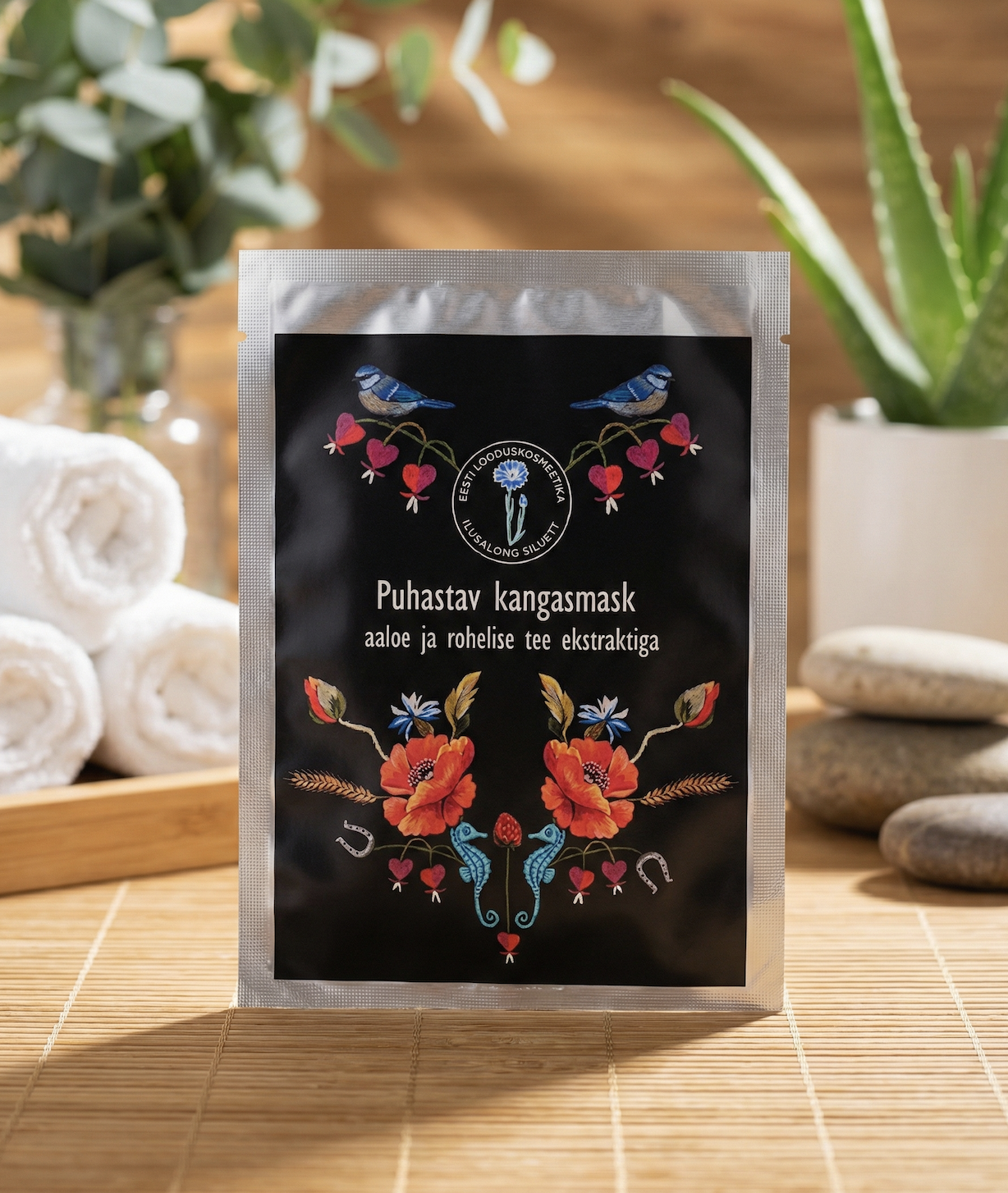 Puhastav kangasmask aaloe ja rohelise tee ekstraktiga pakub nahale sügavat puhastust ja rahustavat hooldust. Roheline tee toimib loodusliku antioksüdandina, eemaldades õrnalt mustuse ja vabade radikaalide kahjustused, samas kui aaloe rahustab ja niisutab, jättes naha värskeks ja tasakaalustatuks. Mask sobib ideaalselt, et taastada naha loomulik puhtus ja elastsus, tuues esile selge ja särava jume. 28g.