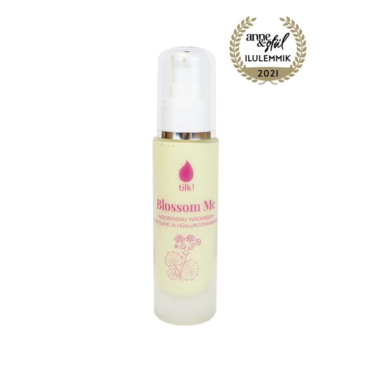 Blossom Me on nahka noorendav ja toitev päevakreem. Hüaluroonhappe näokreem on paljude lemmik, kuna selles sisalduv hüaluroonhape annab nahale kauni jume ja sära. Kreemi soovitame kasutada kuiva naha puhul ja enneagsete vananemisilmingute ennetamiseks.