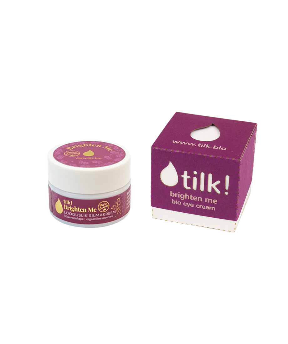 Brighten Me on õrna koostisega niisutav ja toniseeriv silmakreem, mis taastab silmaümbruse nahka ning silub kortsukesi. Koostises oleval hüaluroonhappel on suurepärane omadus siduda nahas niiskust ning transportida naharakkudele hapnikku ja toitaineid. Soovitame silmakreemi oma ilurutiinis kasutusele võtta alates 35. eluaastast, et et ennetada kortsude teket. Hüaluroonhape aitab siluda juba tekkinud kortsukesi, osaleb nahale elastsuse andva kollageeni moodustamisel ning on piisavalt õrn, et mitte silmi ärritada.