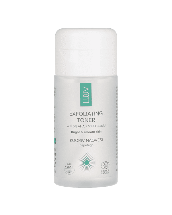LUUV kooriv näovesi eemaldab õrnalt surnud naharakud ning toob välja naha elujõu ja sära. Uue põlvkonna PHA-hape aitab nahal uueneda. Teine imeline koostisaine, AHA-hape, koorib õrnalt naha pindmisi kihte. Kui aga need kaks ühte pudelisse panna, juhtub tõeline ime – mõlema happe efektiivsus mitmekordistub ning me saame ühe uskumatult tõhusa näovee. Ning seda kõike ilma kuivuse ja ärrituseta! Lisaks sisaldab näovesi niisutavat glütseriini ja rahustavat aaloed, mis jätavad Su naha eriti pehmeks ja siidiseks.